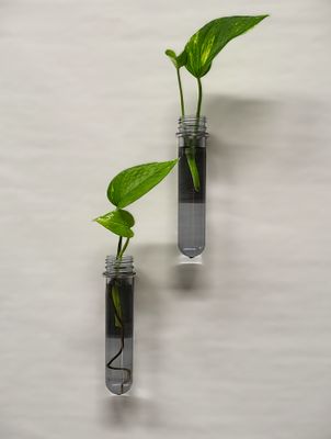 The vials used in the planters are 1.5-liter bottle preforms that were rejected during production, often due to minor issues like drops or falls.